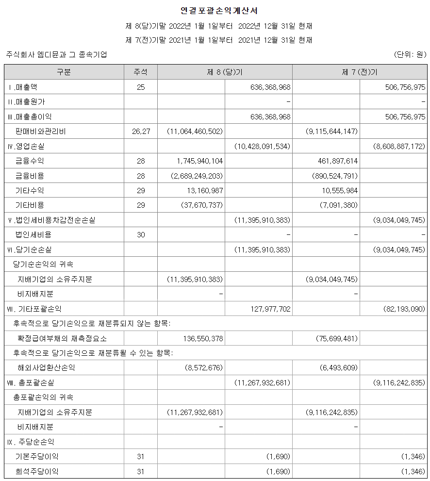 엠디문 공고 제 2023 - 02호 (제 8기 결산공고)