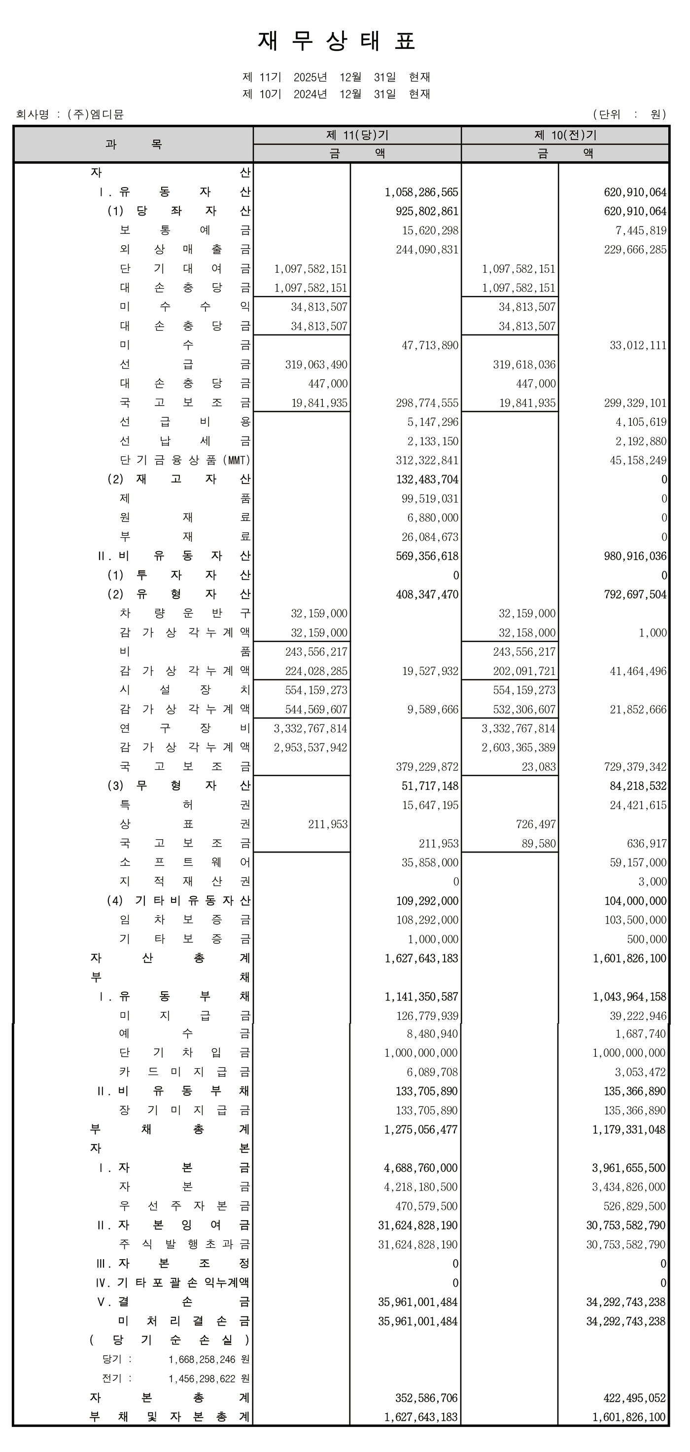 엠디문 공고 제 2026 - 02호 (제 11 기 결산공고)