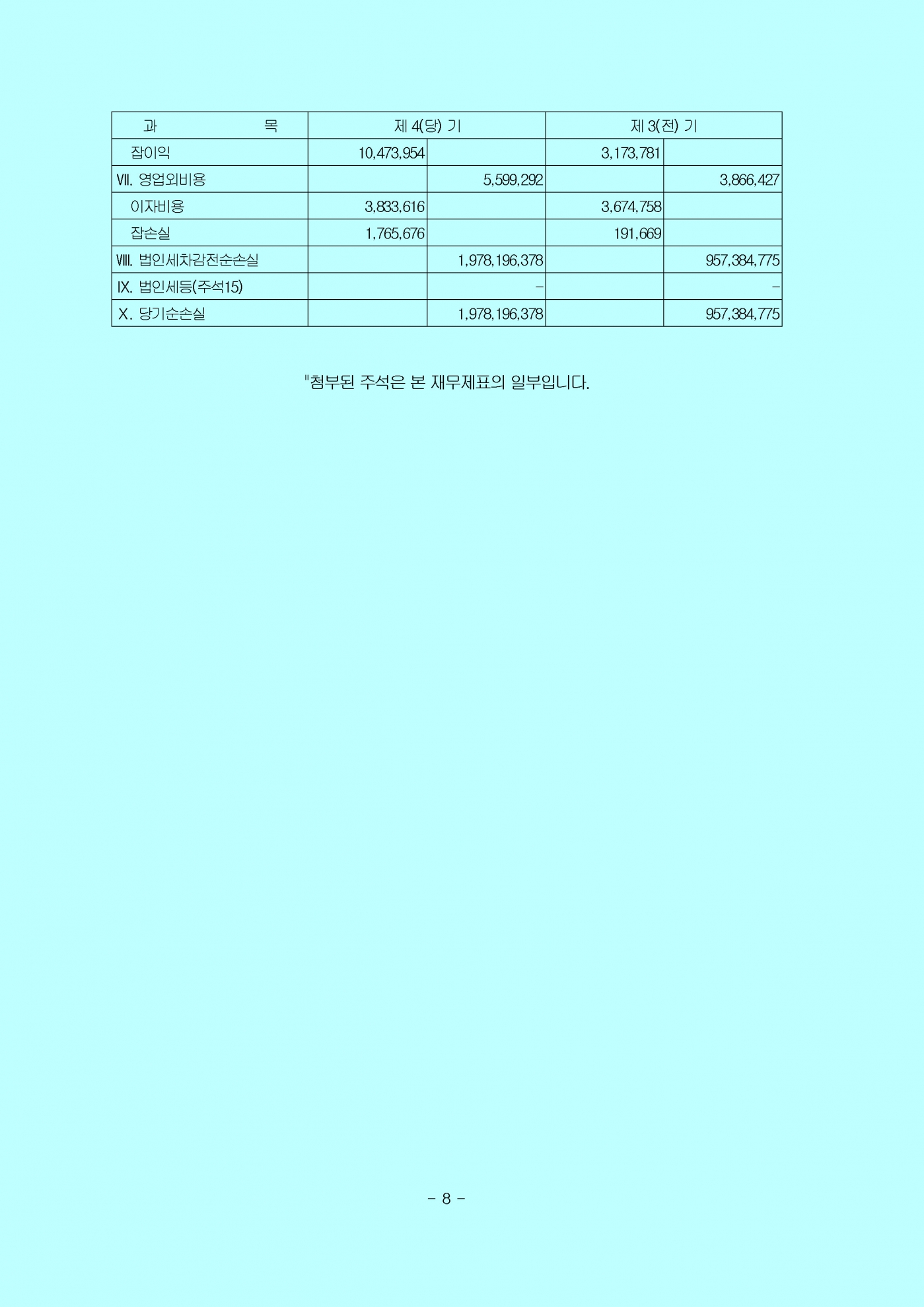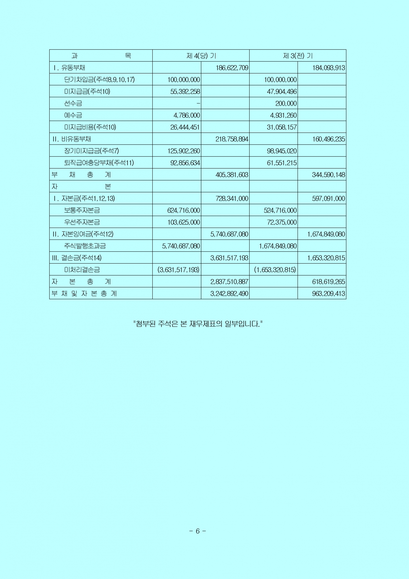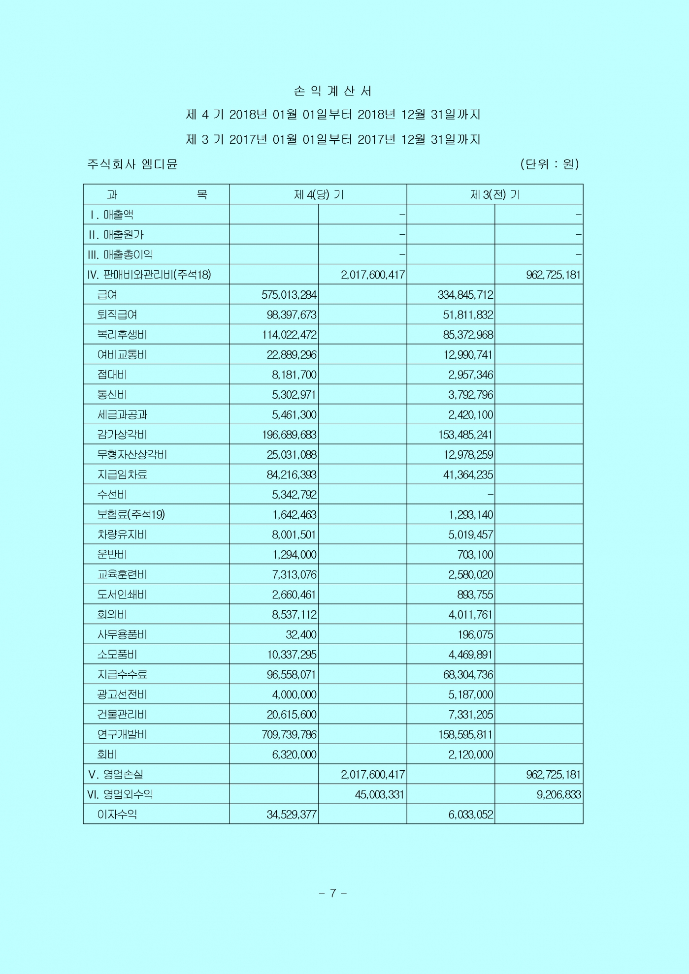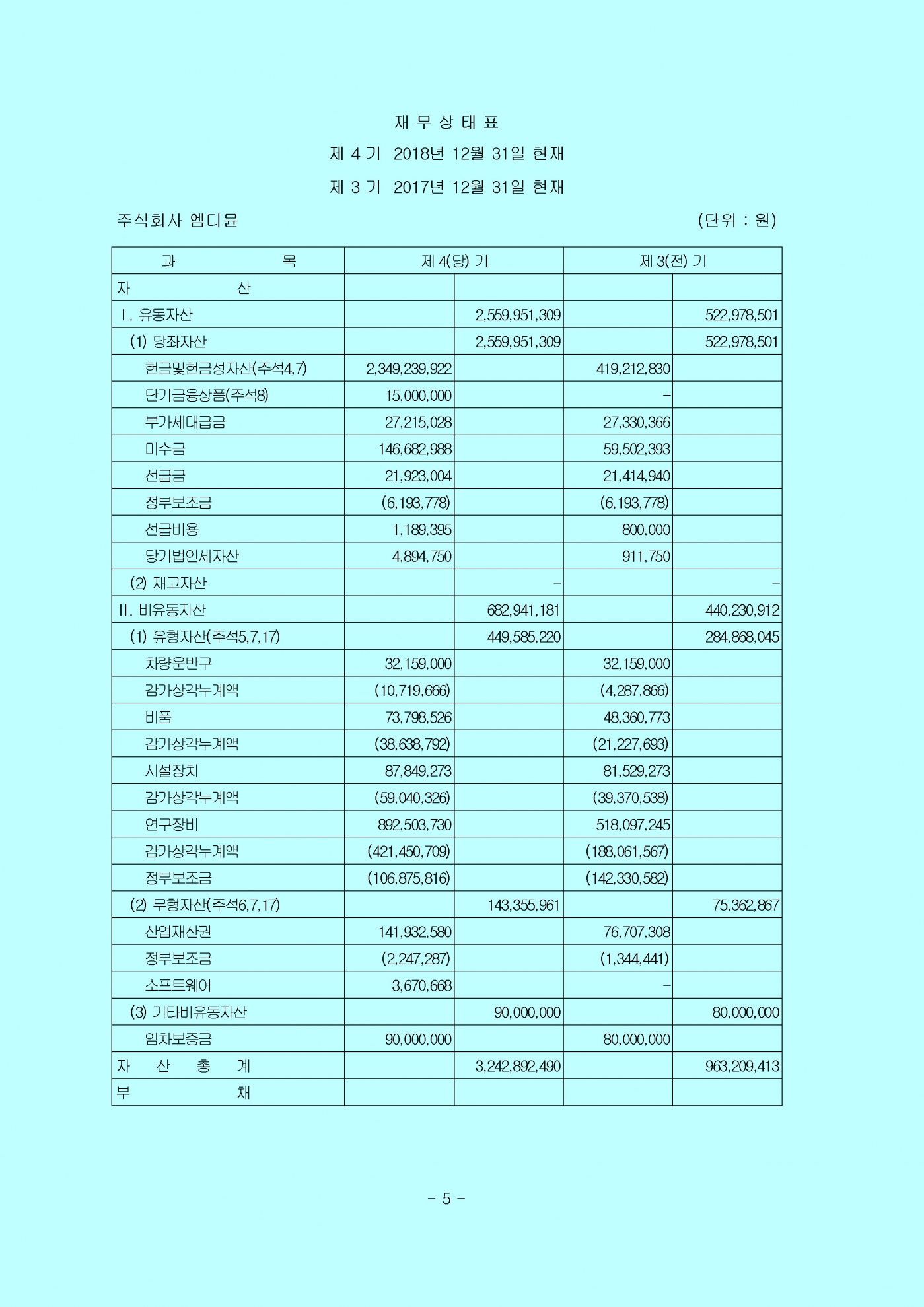 감사의견 : 우리의 의견으로는 회사의 재무제표는 회사의 2018년 12월 31일과 2017년 12월 31일 현재의 재무상태와 동일로 종료되는 양 보고기간의 재무성과 및 현금흐름을 일반기업회계기준에 따라, 중요성의 관점에서 공정하게 표시하고 있습니다.